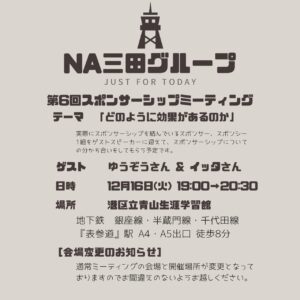 ※通常のミーティング会場(新愛教会)とは異なり、今回は 臨時会場:秋葉原 での開催となります。お越しの際はお間違いのないようご注意ください。